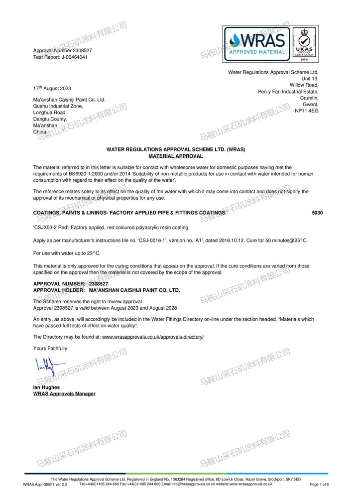 • 馬鞍山采石磯涂料有限公司清潔生產信息公示